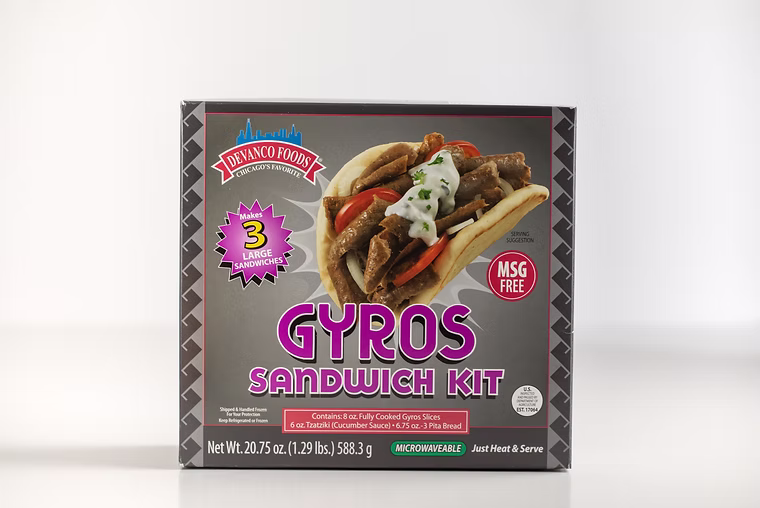 Shipped & handled frozen for your protection. Gyros Sandwich Kits are the perfect solution for that something different craving that your family and guests are looking for! Easy to prepare, a great taste sensation and fun to eat!